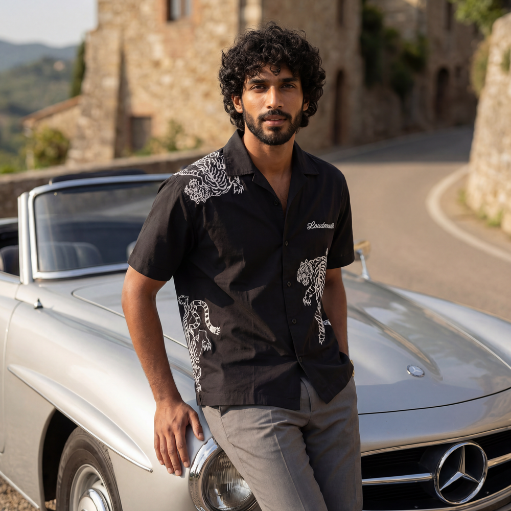 Oversized Black Shirt for Men - Cropped Boxy Fit